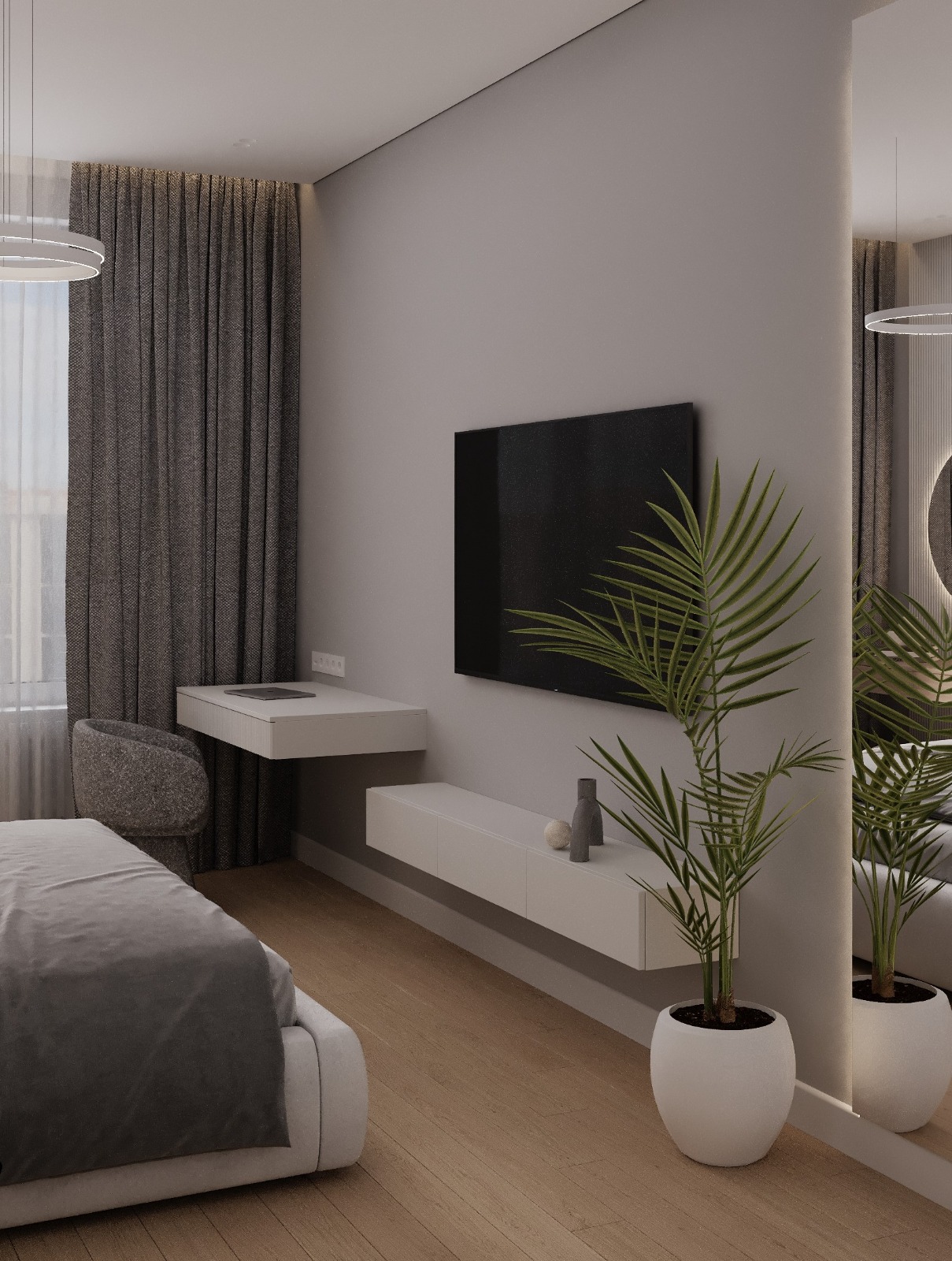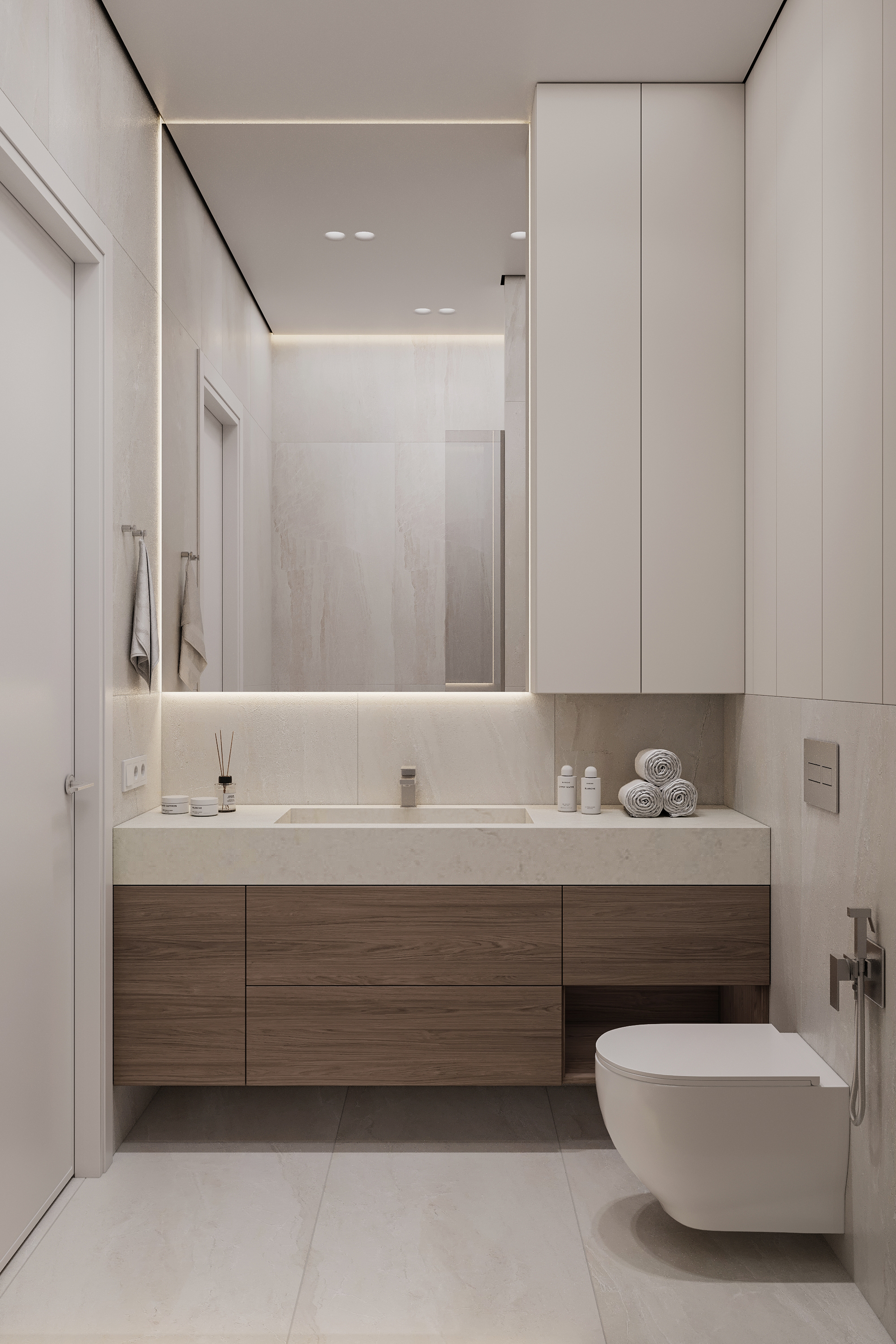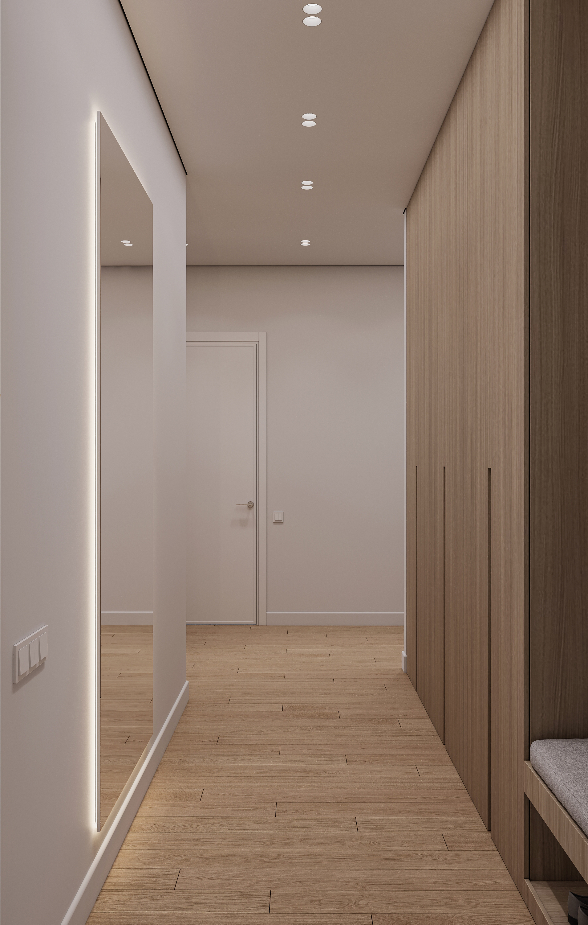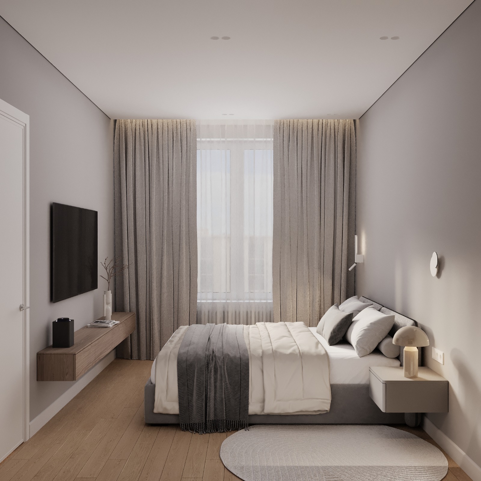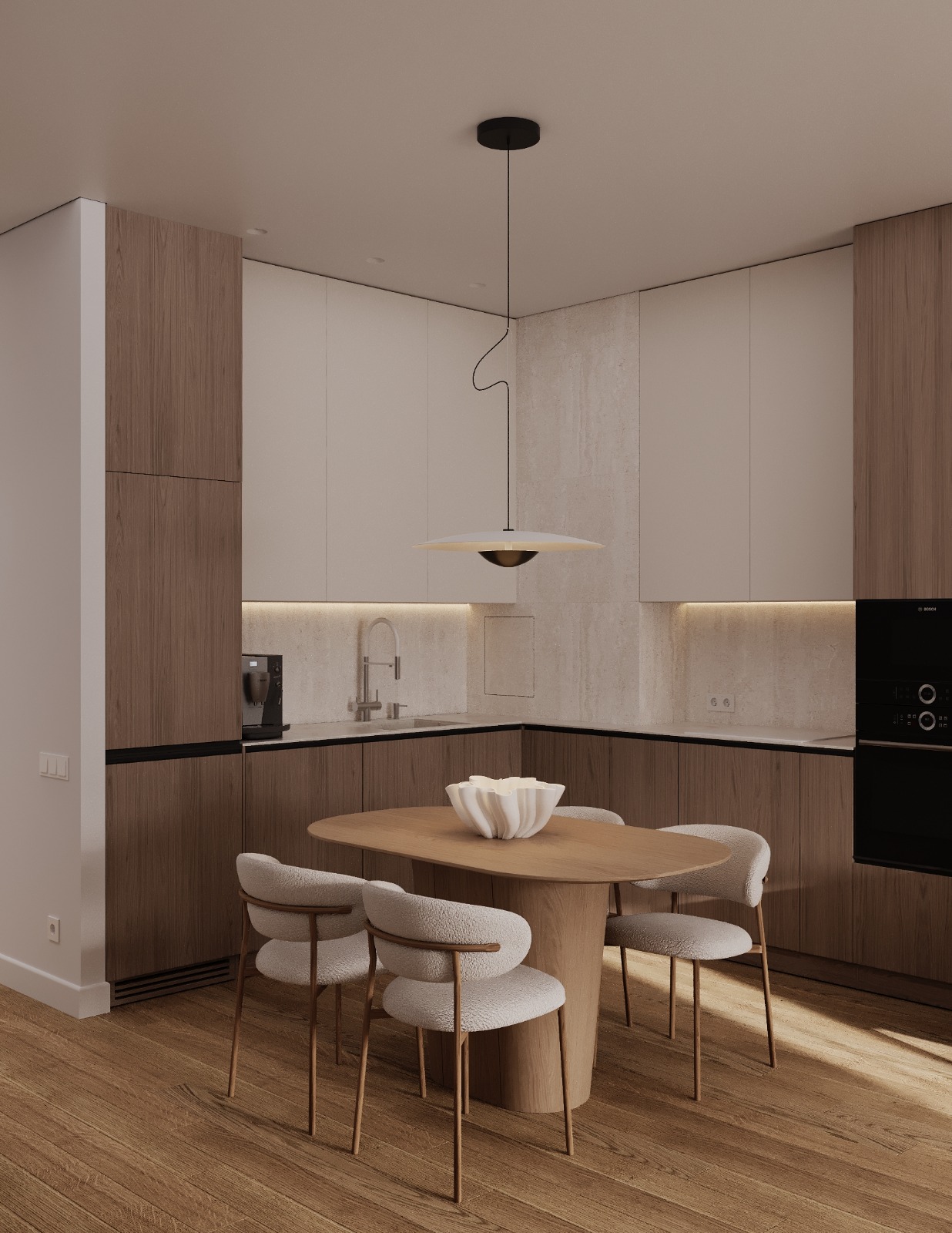 Проект интерьера для семейной пары с дочерью-студенткой выполнен в теплой минималистичной эстетике. Светлая нейтральная палитра, натуральные текстуры и лаконичные формы создают спокойное, гармоничное пространство для жизни и отдыха. В основе функциональность, продуманное зонирование и уют без визуального перегруза.