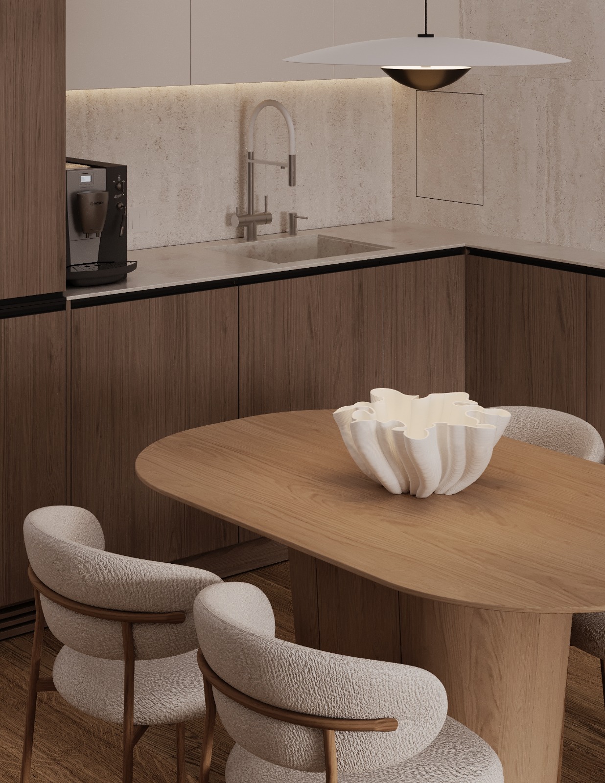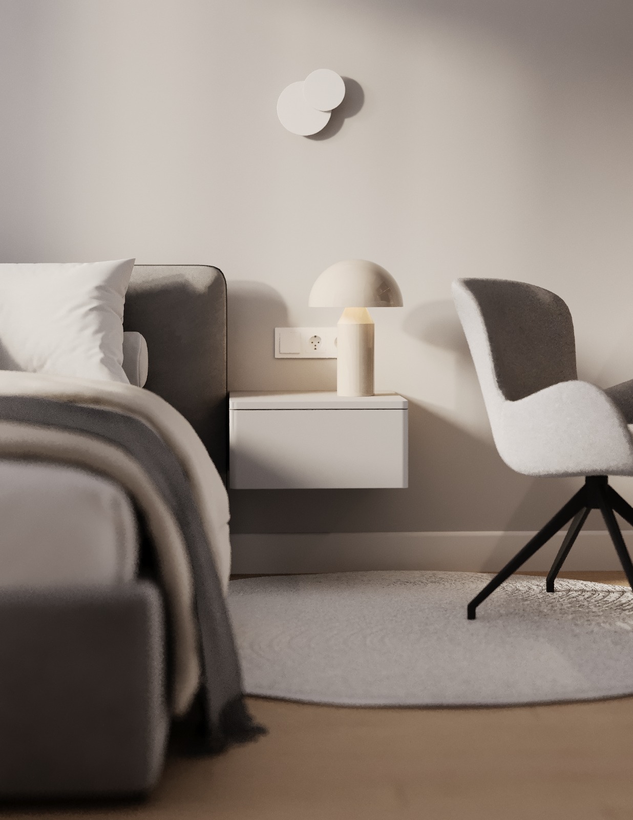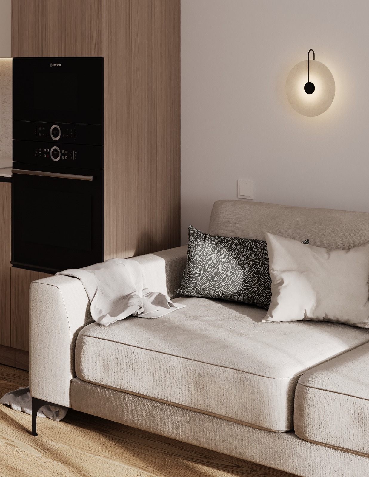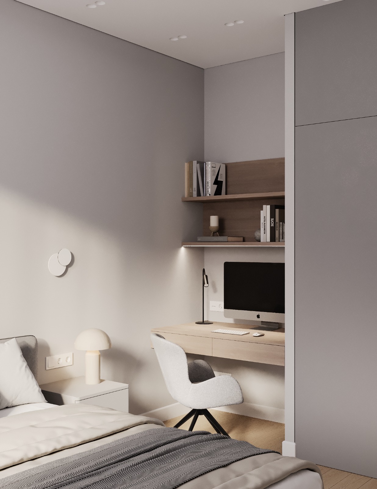 Проект интерьера для семейной пары с дочерью-студенткой выполнен в теплой минималистичной эстетике. Светлая нейтральная палитра, натуральные текстуры и лаконичные формы создают спокойное, гармоничное пространство для жизни и отдыха. В основе функциональность, продуманное зонирование и уют без визуального перегруза.